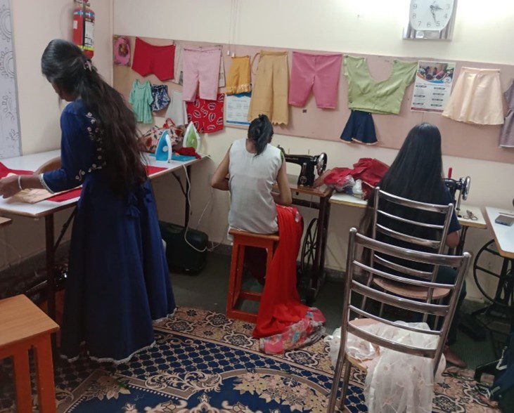 People do not think necessary providing opportunities to the women & adolescent girls for modern education & vocational skills in India. SKETS Hope Centre has a dedicated centre to impart tailoring and stitching skills to the women. We are running morning and evening batches of classes which help students to start their journey in the world of sewing. The classes are designed to help beginners to comfortably start sewing clothes. There are tremendous opportunities for the women to get suitable employment in fashion and related industry. Additionally, it will improve their entrepreneurship and employment skills & empower them taking decision about themselves. Make them self-reliant, so that they can start a small self-sustaining business and enhance employability. The student teacher ratio is 15:1, i.e. 15 students per batch under one teacher. There are four batches going on regular basis in the morning and evening.